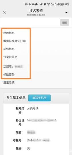 特别注意:使用手机端登录,显示界面可能与电脑端有所不同。如果考生登录进入系统后,没有找到菜单栏目,请在手机显示界面右上端,找到并点击“三条短横线”(由于手机系统差异,此栏目显示各有形状,请注意仔细观察)后,根据出现的下拉菜单,找到相应操作按钮,按流程进行操作。